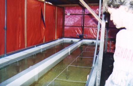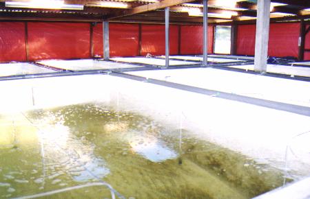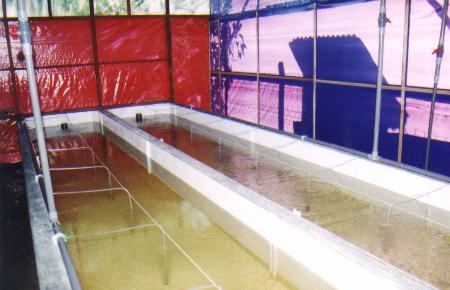 Larvae breeding tanks for freshwater prawn.