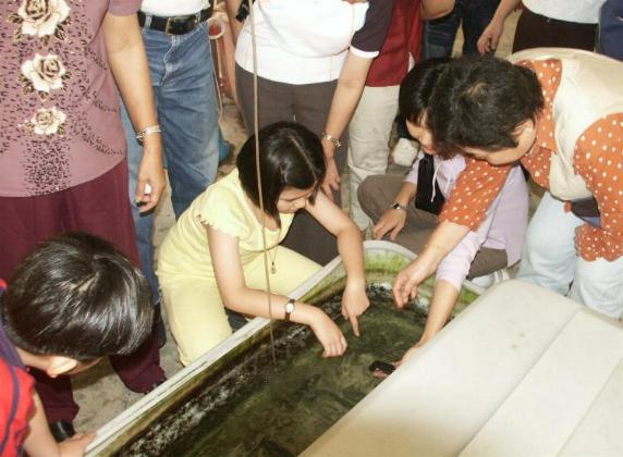 Visitors of Selangor National Type Chinese School Headmasters and family members. Harvesting P.indicus for sale.