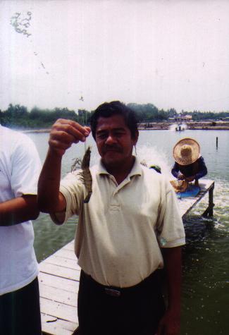Mr. Yahaya shown a XXL tiger prawn. |
