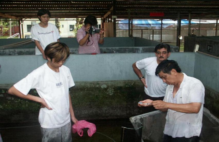 Visit to Sungai Siput Aquarium Fish Farm Mr. Chan from Brunei. Practical works for seabass induced spawning Visit to Kota Tinggi Tiger Prawn Farm Visit to STAC's alumnus grouper nursery at Sungai Rengit, Johore. . Course completion for April (Bernad Lim from Sarawak adn two from UPM) Course completion for Mr.Lewis from Singapore with friends Visit to (Tubiflex) farm at Sungai Siput