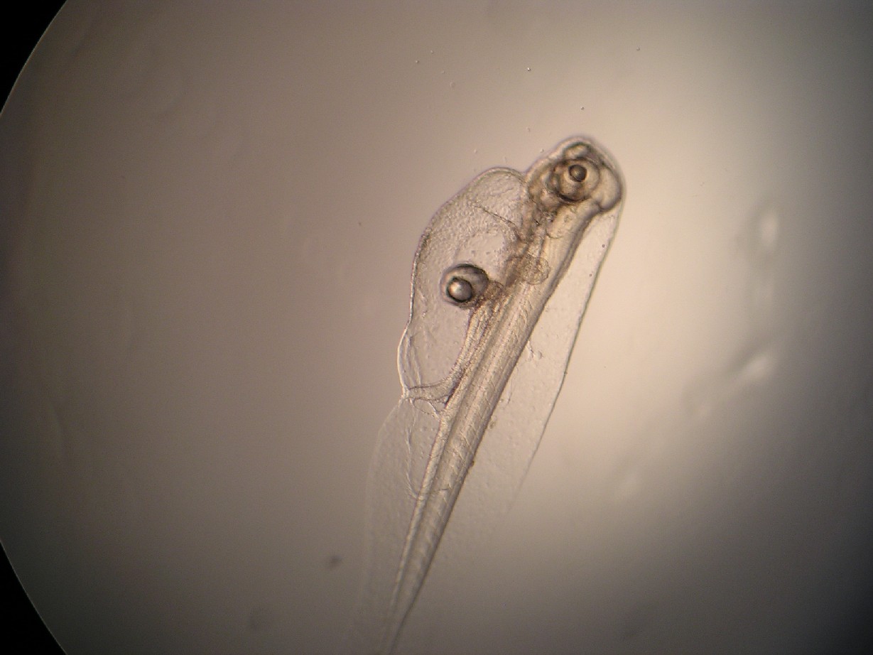 grouper larvae under microscope. |