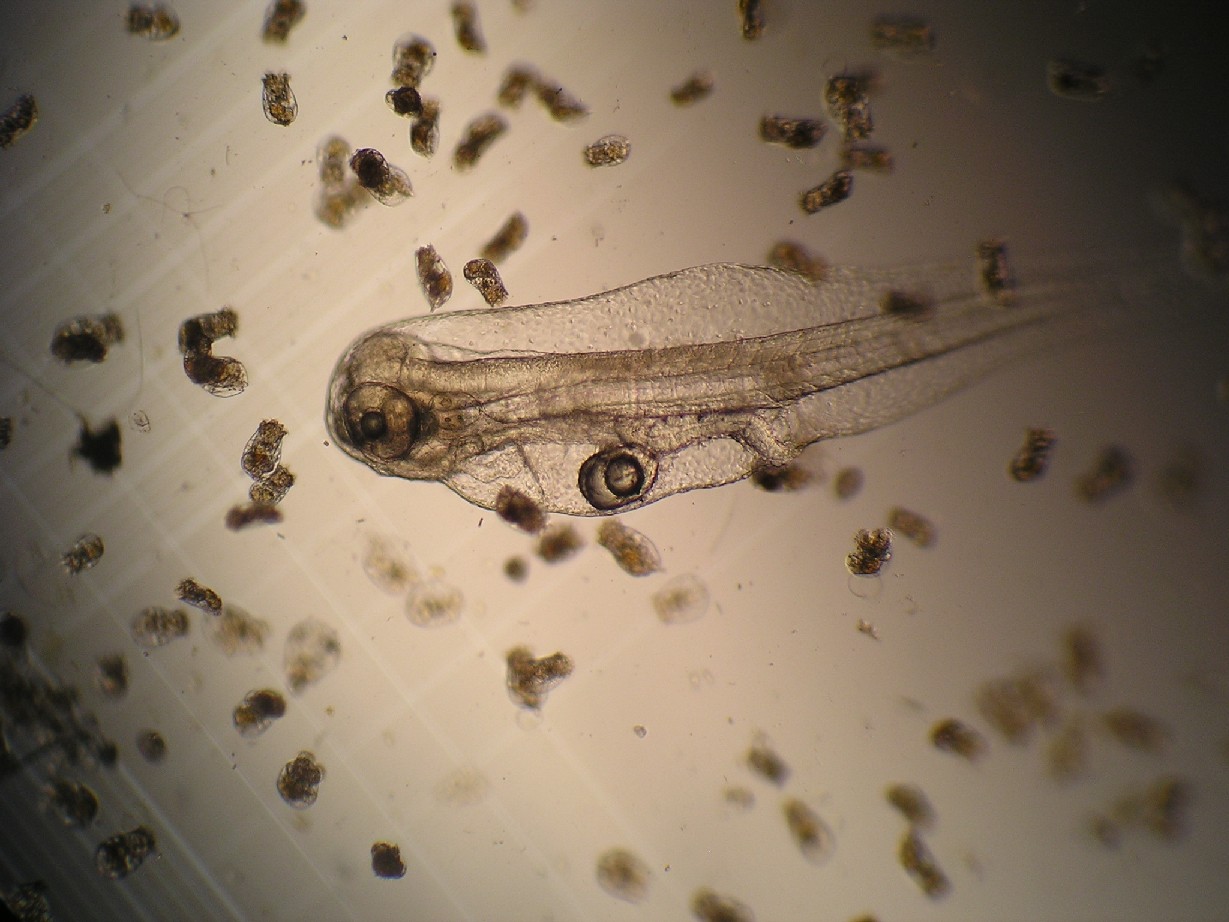 Hatchery operation work Releasing Tiger Grouper hatched eggs in fiber-glass tank as the first lesson for practical work in marine fish hatchery operation course. Practical work at STAC Dissection of marine fish showing the internal organs. Culture of SS-rotifer and copepod Tiger grouper larvae under microscope.