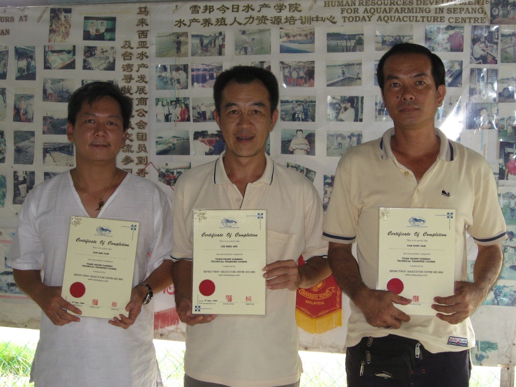 Mr. Goh (Kelantan), Mr. Lee (Kelantan) & Mr. Yam (Kedah) attended Tiger Prawn Farming Technical Transfer Course at STAC.