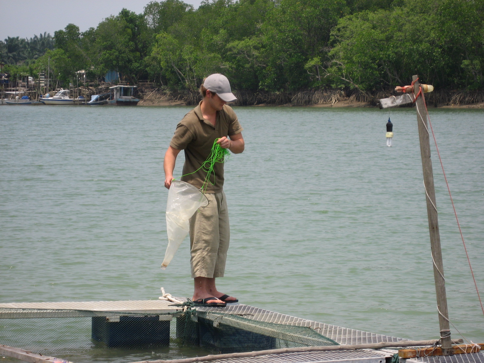 boat trip to marine floating cage at Sepang