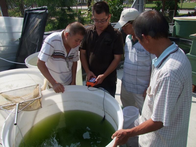 Checking on Jade Perch Brood Stock.