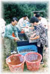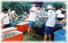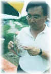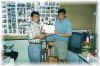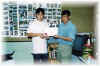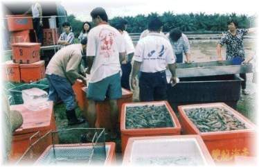 Mr John Nip from Sabah Grading prawns in progress. Mr Ewe inspecting the tiger prawn. Completion certificate given to Mr. John Nip. Feed preparation in progress. Course completion certificate achieved by 2 January 1999 Harvesting of tiger prawn. Examination in progress. Mr. Wong receiving the certificate from the chairman, Mr Khoo .Unloading prawns, ready for sale.