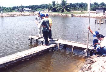 Practical work in progress at STAC. Group photo at Carey island tiger prawn farm Practical work at farm. STAC trainees at Morib Mr. Halim hatchery Algae culture for tiger prawn zoa stage pL counting for stocking. Two SMB senior staff attended STAC aquafarming course. Tea seed cake application in progress. Practical work at farm in progress. Practical work at farm in progress. pL quality inspection by SMB participant Mr. Apoo. pL counting by UPM graduate Mr. Chee. Mdm.Norlinda from UPM received course completion certificate. Mr. Maple Hung from President aquafeed Taiwan received course completion certificate from Mr. Khoo the chairman of STAC. Site visit for STAC trainees.